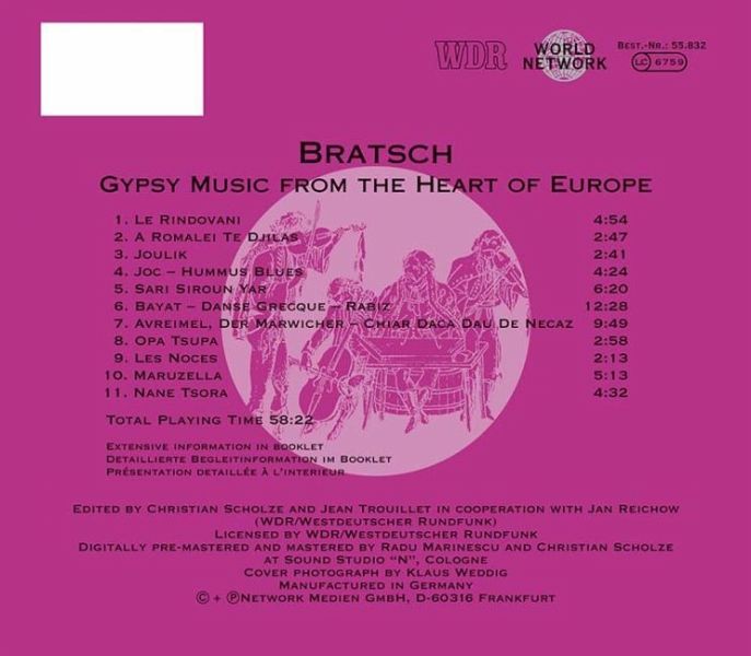 Bratsch lassen die Musik der Zigeuner mit großer Virtuosität aufleben. Mit Gefühl, ergreifendem Gesang und subtilen Arrangements kreieren sie eine neue akustische Musik, in der die Nostalgie Osteuropas, die Farbe des Mittelmeeres, die Fingerfertigkeit der Zigeuner und jiddische Ironie (aufgehen) Musik ohne Grenzen. (Le Monde)