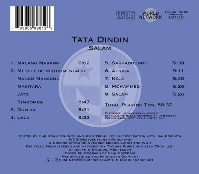 Die singenden Saiten der Kora bieten bei Tata Dindin Klangerlebnisse, die nicht nur vom Ohr wahrgenommen werden, sondern buchstäblich unter die Haut gehen. Mit seinem atemberaubend virtuosen Spiel, seinem weichen, emotionsgeladenen Gesang und eigenen Kompositionen, die auf der Tradition aufbauen, wurde er schnell der populärste Musiker Gambias.