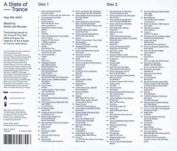 Der das Jahr krönende 113-Track-Mix beginnt mit einem inspirierenden Intro, das von niemand geringerem als Moby erzählt wird. Er überschreitet Grenzen und webt seelenverwandte Sounds zusammen. Der Year Mix besteht aus Produktionen von Szenelieblingen wie Armin van Buuren, Paul van Dyk und Ben Gold, von Ferry Corsten, KI/KI und Ben Hemsley. Er hält das Trance-Erbe aufrecht und umfasst gleichzeitig Sounds, denen man einst ein anderes Label zuordnete. Es ist die Essenz der weltweit ausgestrahlten "A State Of Trance" Radioshow von Armin van Buuren, gevotet von seinen Hörer_innen rund um den Globus.