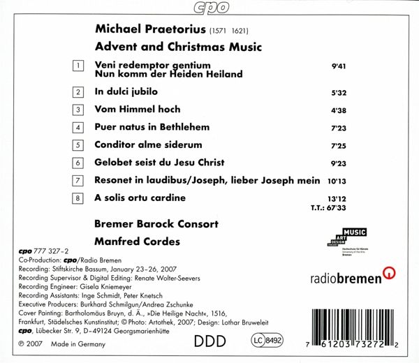 | 1 | Veni redemptor gentium (Nun komm der Heiden Heiland) | 00:09:41 | |