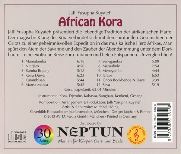 Jalli Yusupha Kuyateh präsentiert die lebendige Tradition der afrikanischen Harfe. Der magische Klang der Kora verbindet sich mit den spirituellen Geschichten der Griots zu einer geheimnisvollen Expedition in das musikalische Herz Afrikas. Man spürt den Atem der Savanne und den Zauber der Abendstimmung unter dem Dorfbaum - eine exotische Reise zum Träumen und tiefen Entspannen. Unvergleichlich!