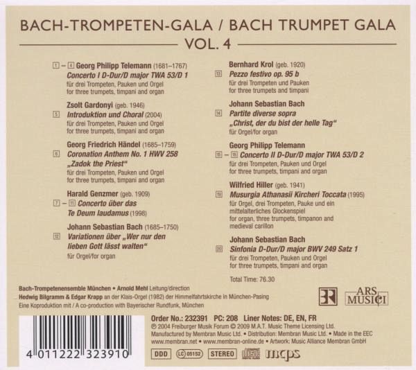 | 1 | Konzert für drei Trompeten, Pauken und Orgel Nr. 1 D-Dur (bearb. von Arnold Mehl) | ||