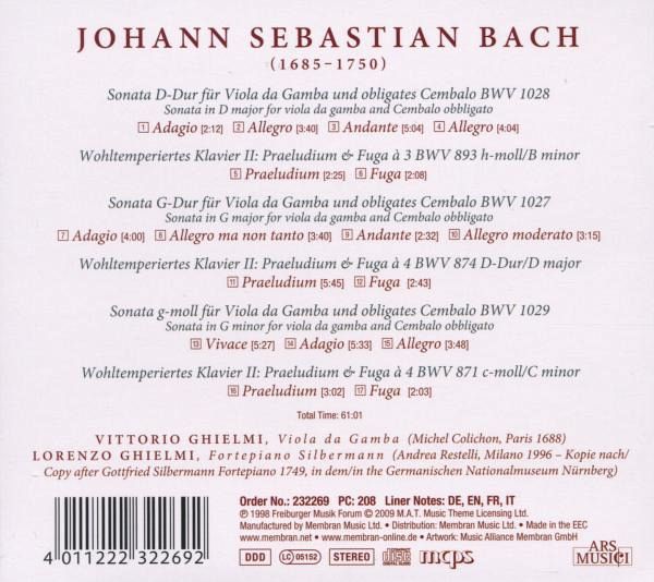 | 1 | Sonate für Viola da gamba und Cembalo D-Dur BWV 1028 | ||