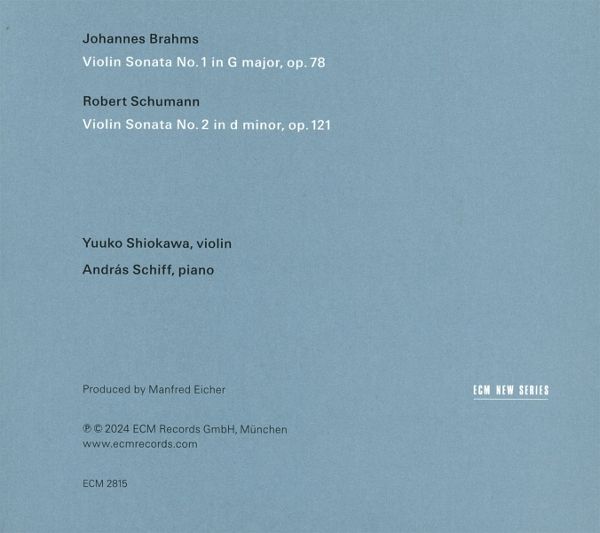 Nachdem Yuuko Shiokawa und András Schiff 2017 drei Sonaten für Violine und Klavier von Bach, Busoni und Beethoven aufgenommen hatten ein durchdachtes und subtil verwobenes Programm, so das englische Magazin Strad , präsentiert das Duo hier nun eindrucksvolle Interpretationen von Brahms? Violinsonate Nr. 1 und Schumanns Violinsonate Nr. 2. Brahms? Violinsonate in G-Dur, bekannt als Regenliedsonate, wird mit besonderer Einfühlsamkeit interpretiert und steht in wirkungsvoller Gegenüberstellung zu Schumanns bisweilen energetisch treibender Sonate in d-Moll. Shiokawa und Schiff widmen sich der Musik dieser Komponistenfreunde mit großer Ausdruckskraft und beweisen auf der dritten gemeinsamen Einspielung für ECM?s New Series erneut ihr ausgeprägtes Duo-Verständnis.
