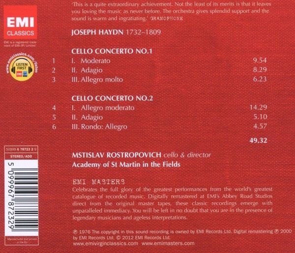 | 5 | Concerto for Cello and Orchestra No. 2 in D Major, Hob. VIIb:2 (Cadenzas: Mstislav Rostropovich) (1999 Digital Remaster) | 00:05:10 | |