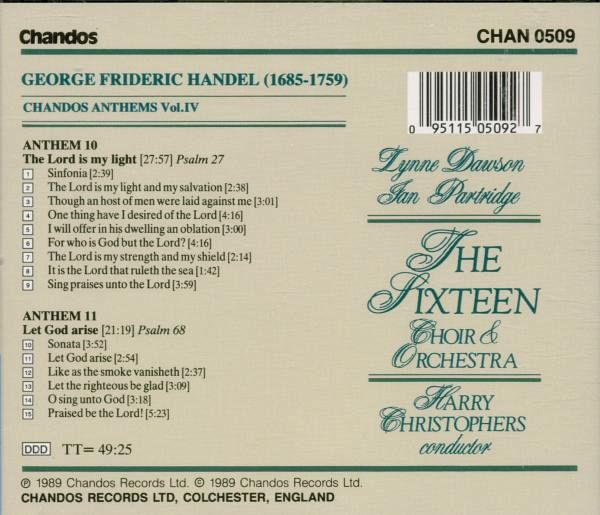 | 10 | Chandos Anthem Nr. 11 HWV 256 (Let God arise) (Psalm 68) | ||