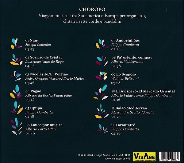 Filippo Gambetta (brasilianisches Akkordeon und Mandoline) und Alessandro Scotto d'Aniello (brasilianische 7-saitige Gitarre) nehmen die Zuhörer mit auf eine Reise, die in den karibischen Gefilden der Jahrhundertwende beginnt und den 'Choro' - eine Instrumentalmusik mit vielfältigen Einflüssen im Grenzbereich zwischen mitteleuropäischer Musikromantik und Afro-Rhythmen - nach Europa bringt. Die Rhythmen des 'valse musette' und der langsamen Mazurka wechseln sich im musikalischen Reigen mit venezolanischer Instrumentalmusik und Eigenkompositionen ab, ohne Italien zwischen einer Tarantella und einer Neuinterpretation des Liscio zu vernachlässigen. Die beiden Genueser Musiker Filippo und Alessandro sind seit 2020 als Duo aktiv und haben zahlreiche Konzerte gegeben. Auf dem Album Choropo (2024) wird das Duo von internationalen Gastmusikern begleitet.