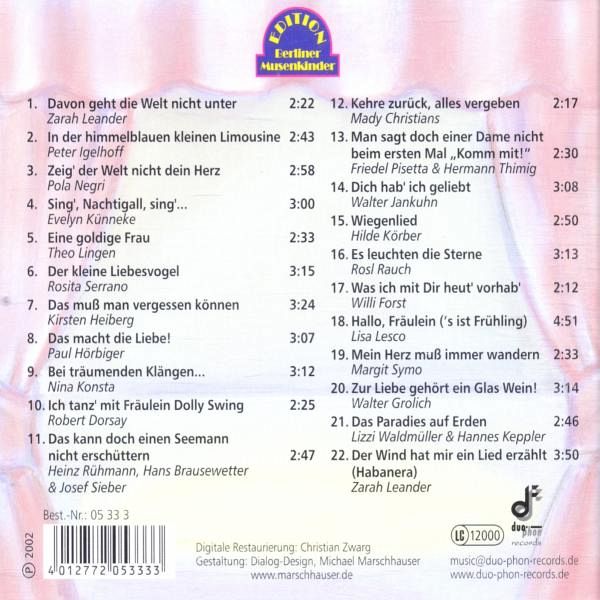 | 18 | Hallo, Fräulein ('s ist Frühling) | 00:04:54 | |