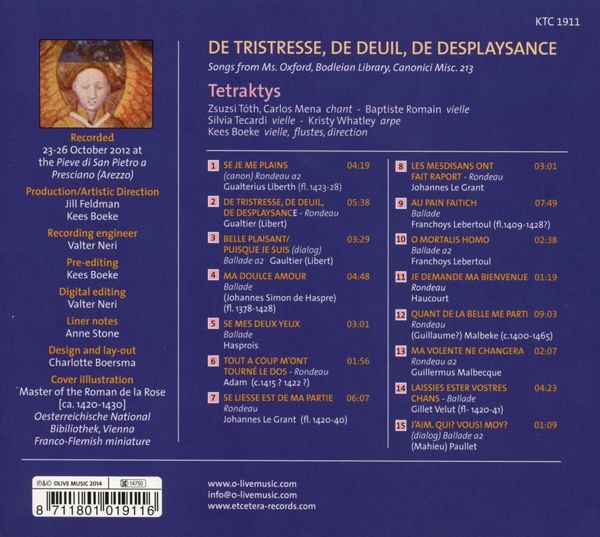 | 2 | De tristresse, de deuil, de desplaysance (Rondeau) | 00:05:38 | |