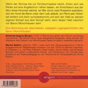 Wenn der Schnee bis zur Kirchturmspitze liegt, Enten sich wie Perlen auf eine Angelschnur ziehen lassen, ein Kirschbaumaus der Stirn eines Hirsches wächst, ein Bär durch zwei Flintsteine explodiert, sich ein Hund die Beine unter dem Leib abläuft, ein Pferd sein Hinterteil verliert und doch zurückbekommt und sich der Held an seinem eigenen Zopf aus dem Sumpf zieht, kann dieser Held natürlich nur Baron Münchhausen sein!