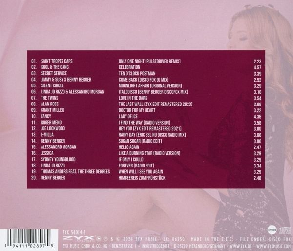 Die CD Compilation Disco Fox Diamonds präsentiert 20 Titel, die perfekt für alle Tanzliebhaber geeignet ist. Jeder Song wurde modern produziert, um eine mitreißende Atmosphäre auf der Tanzfläche zu schaffen. Disco Fox Diamonds bietet eine vielfältige Auswahl an Musikstilen, die den klassischen Disco Fox mit zeitgemäßen Elementen verbinden. Von mitreißenden Beats bis hin zu eingängigen Melodien verspricht diese Compilation, Ihre Tanznächte mit Energie und Freude zu füllen.