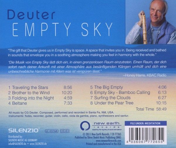 Diese CD von Deuter lädt dich ein, in einen grenzenlosen Raum einzutreten. Einen Raum, der dich sofort nach deiner Ankunft mit einer Atmosphäre aus besänftigenden Klängen umhüllt und dich eine unbeschreibliche Harmonie mit allem was ist verspüren lässt.