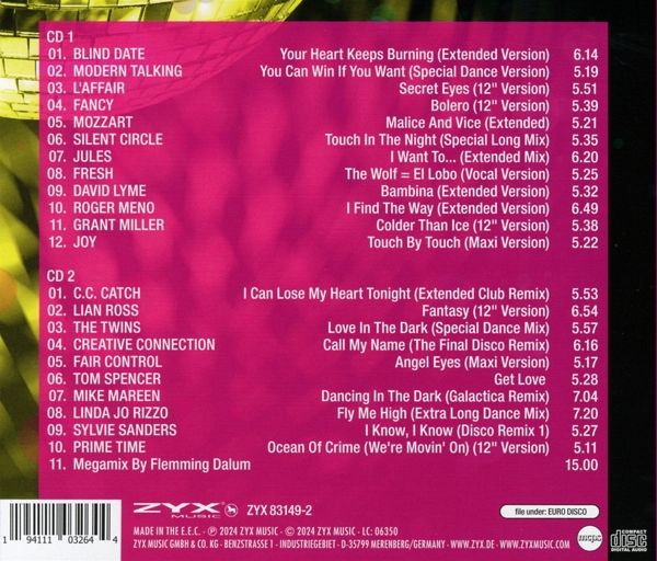 Die neue CD-Compilation-Serie Euro Disco History ist ein Muss für alle Liebhaber der tanzbaren Rhythmen und eingängigen Melodien der 80er Jahre. Die Serie beleuchtet die glanzvollen Jahre des Euro Disco und startet chronologisch mit dem Jahr 1985. Jede CD ist sorgfältig zusammengestellt und präsentiert die größten Hits des jeweiligen Jahres. Der Auftakt der Serie beginnt mit dem Jahr 1985, einem Jahr, das als eines der prägendsten für Euro Disco gilt. Diese erste Folge der Serie bietet eine faszinierende Sammlung von Tracks, die den Sound und die Atmosphäre dieser aufregenden Ära einfangen.Besonders hervorzuheben ist der 15 minütige Megamix und die Liner Notes von Flemming Dalum. Mit dabei sind u.a. Modern Talking, C.C Catch, The Twins, Silent Circle, Fancy, Linda Jo Rizzo, Lian Ross, Grant Miller, Fair Control.