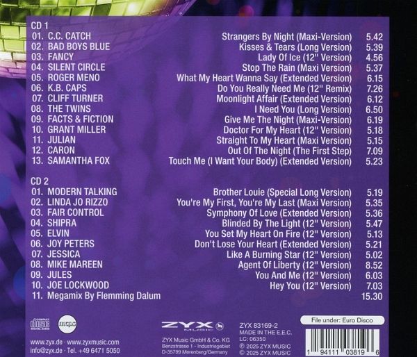 Die neue CD-Compilation-Serie "Euro Disco History" geht in die nächste Runde. Die Serie beleuchtet die glanzvollen Jahre des Euro Disco und wird mit dem Jahr 1986 fortgesetzt. Jede CD ist sorgfältig zusammengestellt und präsentiert die größten Hits des jeweiligen Jahres. Das Jahr 1986 lieferte unzählige Charterfolge und Euro Disco war endgültig in den Europäischen Hitparaden angekommen. Als besondere Highlights gibt es wieder den Megamix und die Liner Notes von Flemming Dalum. Mit dabei sind u.a. Modern Talking, Bad Boys Blue, C.C Catch, The Twins, Silent Circle, Fancy, Linda Jo Rizzo.