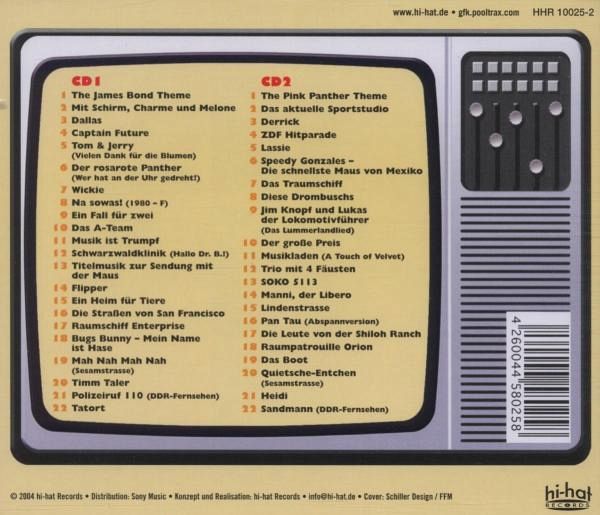 Wie war das noch mal mit dem Fernsehen in den 70ern&80ern? Wie klang das eigentlich wenn Loriot's Zeichentrick-Hund"Wum"die Quiz-Show"Der große Preis"eröffnete? Was für ein Gefühl war das, wenn mit einer dramatischen Musik die"Straßen von San Francisco"eine spannende Krimi-Zeit bescherten oder"Der rosarote Panther"wieder seinen Schabernack trieb? Gab das Fernsehen von damals nicht einen Hauch von Geborgenheit und waren die Zeiten nicht doch ein wenig schöner, als es noch drei TV-Programme gab? Erfahren Sie es selbst mit einer Reise in der Zeit, beamen Sie sich in die Fernsehgeschichte und schwelgen in den Erinnerungen - mit den 44 schönsten Titelmelodien der größten TV-Erfolge. Die Doppel-CD"FERNSEH-HITS"läßt viele bekannte TV-Melodien vergangener Zeiten wieder auferstehen und verwendet dabei ausschließlich Originalaufnahmen! Deutsche Klassiker wie die ZDF Hitparade, Das aktuelle Sportstudio oder Derrick und Polizeiruf 110 sind genauso dabei wie internationale Straßenfeger ß la Mit Schirm, Charme und Melone, Dallas oder Kinderserien von Flipper bis Wickie...