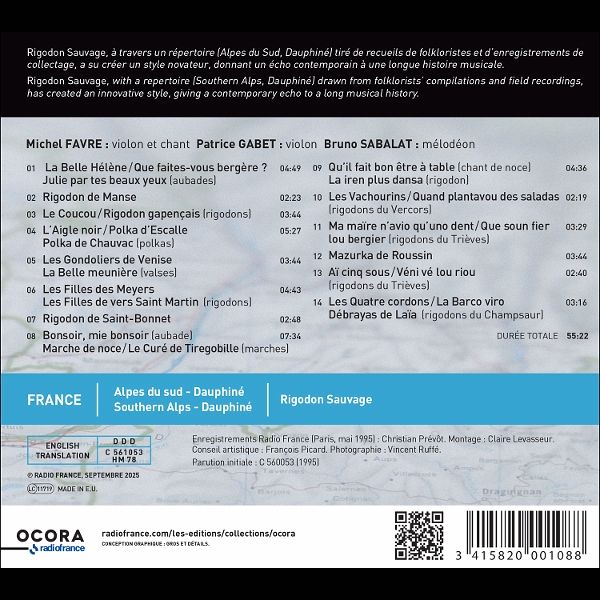 | 2 | Rigodon de Manse (bearb. für kleines Ensemble von Rigodon Sauvage) | 00:02:23 | |