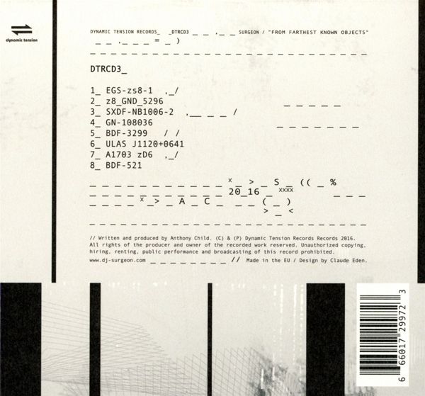 Surgeon (Anthony Child) ist ein bekannter britischer DJ und Produzent im Bereich der elektronischen Tanzmusik. Er präsentierte kürzlich einen Mix für angesehene FABRI-Serie und sein Backkatalog erschien auf TRESOR. Surgeon war an Musikprojekten mit dem "Napalm Death"-Schlagzeuger Mick Harris, British Murder Boys (mit Regis), und Frequenz 7 (mit Ben Sims) beteiligt. Er war drei Jahre lang Resident-DJ im Berliner Club Tresor. Außerdem ist Child Gründer und Besitzer der beiden Labels Counterbalance und Dynamic Tension. Viele andere Produktionen sind auf Labels wie Tresor Records, Soma Quality Recordings, und Harthouse erschienen. Child gilt als einer der ersten DJs, die in ihren DJ-Sets mit Ableton Live und Final Scratch auflegten. Sein neues 7. Album, überwiegend mit Hardware aufgenommen, gab ihm während der Sessions da Gefühl, dass er zufällig Übertragungen vpn Pop Hits aus einer anderen Galaxie aufgenommen hatte.