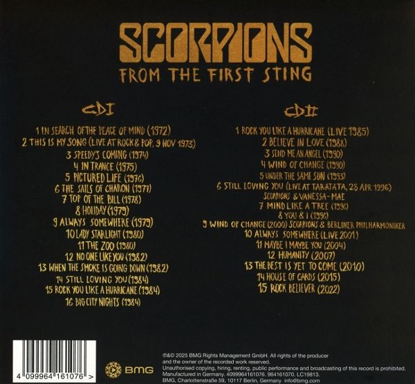 Um 60 Jahre dieser unglaublichen Reise zu feiern, nimmt 'From The First Sting' Sie mit auf eine Reise durch die legendärsten und prägendsten Epochen der Band. Mit 31 handverlesenen Titeln präsentiert diese Sammlung die jahrzehntelange Arbeit der Band, darunter zwei unveröffentlichte Songversionen. Erhältlich als limitiertes Deluxe-Bookpack (mit zwei sparkling -LPs/2 CDs und einem 40-seitigen Buch), als 2-LP-Gatefold auf schwarzem 180-g-Vinyl oder als 2-CD-Digi-Sleeve, wirft diese umfassende Veröffentlichung ein bleibendes Licht auf die Karriere dieser einflussreichen Meister des Genres.