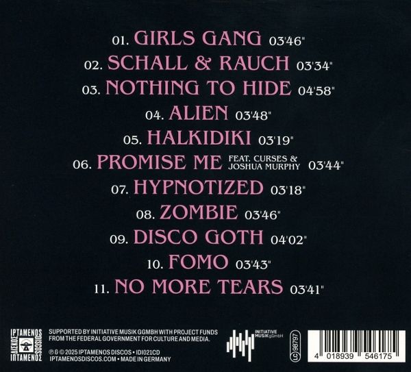 Dina Summer ist ein kollaboratives Projekt, das aus Kalipo, einer Hälfte der legendären Electro-Punk-Band Frittenbude, und dem griechisch-deutschem DJ & Produzenten Duo Local Suicide besteht, die das Label Iptamenos Discos betreiben. Ihre bisherigen Werke umfassen das von Kritikern gefeierte Album ?Rimini? aus dem Jahr 2022, das einen nostalgischen Einblick in Retro-Disco-Vibes bietet, sowie die EPs ?Who Am I? (2021) und ?Hide & Seek? (2024). Seit der Gründung der Band vor fünf Jahren hat Dina Summers Musik mit Millionen von Streams, weltweitem Radio-Airplay und zahlreichen Spotify- und Apple Music-Editorial-Playlists für Aufsehen gesorgt und wurde von DJs wie Charlotte De Witte, The Hacker, Âme, Dixon, Joris Voorn, DJ Hell, Joyce Muniz und Dubfire gespielt. Das neue Album umfasst 11 Songs die sich mit Themen wie Empowerment (?No More Tears? & ?Girls Gang?), Außenseitertum (?Alien? & ?Zombie?), Vergänglichkeit (?Promise Me feat, Curses & Joshua Murphy?), Nostalgie (?Halkidiki?) und Beziehungen (?Nothing To Hide? & ?Hypnotized?) auseinandersetzen. Legte ihr Debütalbum seinen Fokus eher auf den Club zwischen Italo-Disco und 90ies Elektro, erkundet die neue Veröffentlichung eine größere Sound-Palette, die von New Wave & Post-Punk zu Electroclash und Synth- & Indie-Pop reicht. ?Girls Gang? ist ein gutes Stück songorientierter als das Debütalbum, die Band erweitert ihr Repertoire auf einigen Songs unter anderem um echte (!) Bässe und Gitarren, vorallem aber setzt Frontfrau Dina neben ihrem Markenzeichen - Spoken Word - immer öfter auf ihre Gesangsstimme. Trotzdem knüpft das Album nahtlos an das Erstlingswerk an, man hört wieder jene poppige Melodien und Hooks mit denen sich Dina Summer zuvor schon einen Namen gemacht hat, ausgebreitet auf einem Bett aus Indiepop-Hymnen und Club-Brechern.