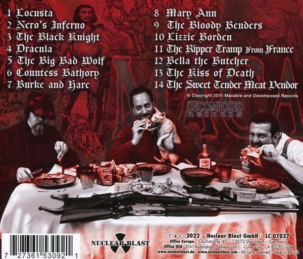 Grim Scary Tales ist ein Album von Macabre, das 2011 veröffentlicht wurde. Das Albumcover zeigt den berüchtigten rumänischen Prinzen Vlad the Impaler, der einen mit Blut gefüllten Kelch hält. Das Album konzentriert sich auf historische Persönlichkeiten, die dafür bekannt sind, Menschen zu töten, wie Vlad Tepes, Countess Bathory, Gilles de Rais und Nero hin und her zwischen gutturalen Knurren und schrillem, heiserem Kreischen".01. Locusta 03:0102. Neros Inferno 02:4303. The Black Knight 04:0504. Dracula 05:1005. The Big Bad Wolf 04:0606. Countess Bathory 03:2607. Burke And Hare 04:1708. Mary Ann 03:3709. The Bloody Benders 02:4610. Lizzie Borden 01:3311. The Ripper Tramp From France 03:3812. Bella The Butcher 03:0013. The Kiss Of Death 03:2414. The Sweet Tender Meat Vendor 05:04
