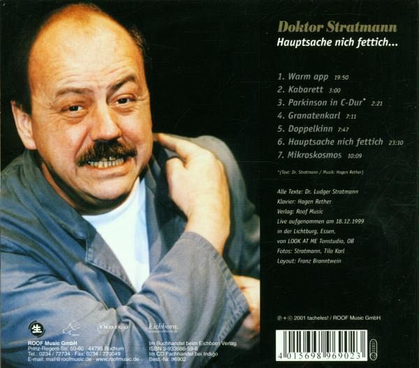 Wissenswertes über die psychologischen Hintergründe des Diät-Wahnsinns, von Schönheitsideale, Kuren, Angst und Falten. Doktor Stratmann ist regelmäßig bei "Mittwochs mit ..." und bei den "Mitternachtsspitzen" im WDR-Fernsehen zu sehen, wo er neben Herbert Knebel zur festen Besetzung gehört. "Mit dem neuen Programm beweist Stratmann seine Professionalität. Seine Mimik ist variabler geworden, seine Sprache wirkt lässiger, seine schier unerschöpflichen in der Praxis aufgeschnappten Redensarten und Patienten-Argumente sind eine wohlsortierte Fundgrube und sein Kapital, mit dem er bravourös wuchert. ... Der eben nicht nur blödelt, sondern mit Wortkaskaden aus dem Ruhrpott intelligent menschelt ... ein bemerkenswerter Hausarzt und Erzkomödiant." diagnostizierte die WAZ.