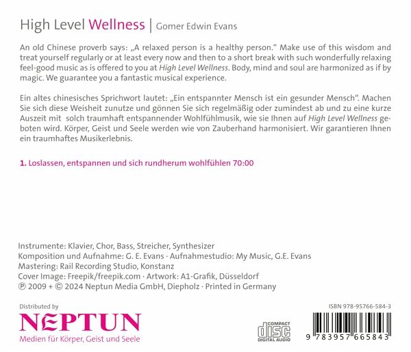 Ein altes chinesisches Sprichwort lautet: "Ein entspannter Mensch ist ein gesunder Mensch". Machen Sie sich diese Weisheit zunutze und gönnen Sie sich regelmäßig oder zumindest ab und zu eine kurze Auszeit mit solch traumhaft entspannender Wohlfühlmusik, wie sie Ihnen auf High Level Wellness geboten wird. Körper, Geist und Seele werden wie von Zauberhand harmonisiert. Wir garantieren Ihnen ein traumhaftes Musikerlebnis.