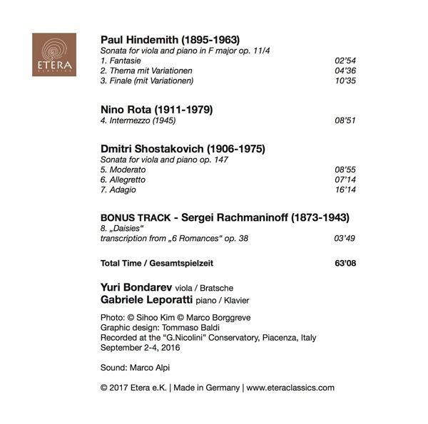 | 7 | Sonata For Viola And Piano In C Major Op. 147 - Adagio | 00:16:14 | |