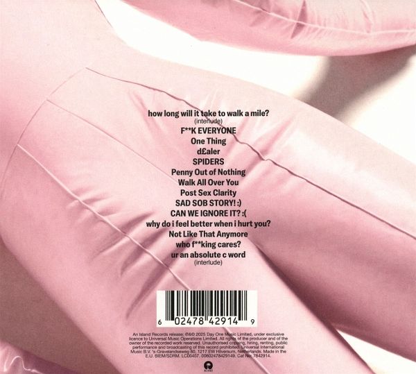 Am 19. September 2025 veröffentlicht die britische Sängerin Lola Young ihr drittes Studioalbum 'I?m Only F**king Myself', welches unter anderem auch ihre Hits 'One Thing', 'Not Like That Anymore' und 'd£aler' enthält. Nachdem sie mit dem hochgelobten Vorgänger-Album 'This Wasn?t Meant For You Anyway' (2024) alle Erwartungen übertraf und mit der Hitsingle 'Messy' die Charts dominierte, legt sie mit diesem Projekt einen drauf. Mit einem musikalischen Mix aus Pop, Soul und Indie-Rock, scharfsinnigen Lyrics, einer ordentlichen Portion Charisma und ihrem typischen South-London-Sound beweist Lola Young, warum sie als einer der spannendsten Stimmen ihrer Generation gilt. 'I'm Only F**king Myself wurde von Lola Young zusammen mit Manuka und SOLOMONOPHONIC (Doja Cat, SZA) geschrieben und produziert und ist ab dem 19.09.25 erhältlich.