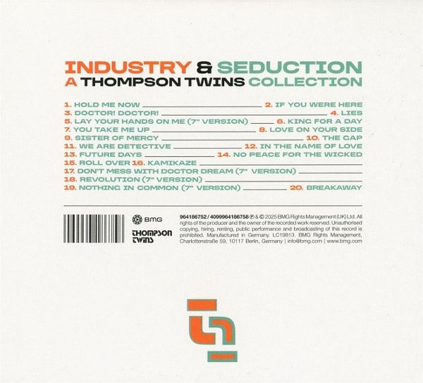 Die ultimative karriereumspannende Sammlung: von den Anfängen des Post-Punk bis hin zu stadiontauglichem Synthie-Pop und darüber hinaus. 'Industry & Seduction' ist die erste Retrospektive der Thompson Twins, die in Zusammenarbeit mit den Bandmitgliedern Tom Bailey, Alannah Currie und Joe Leeway kuratiert wurde. Die Sammlung vereint Musik aus ihrer gesamten bahnbrechenden Karriere und fängt die gesamte Entwicklung einer der abenteuerlustigsten und einfallsreichsten Pop-Bands der 1980er Jahre ein. Sie enthält auch Musik aus ihrem späteren, von Kritikern übersehenen Projekt 'Babble'. Von frühen experimentellen Stücken und Underground-Kuriositäten bis hin zu Welthits wie 'Hold Me Now', 'Love On Your Side', 'Doctor! Doctor!' und 'We Are Detective' beleuchtet die Sammlung die ständige Neuerfindung der Band - vom Chaos der Kunsthochschule über makellosen Pop und Dub-beeinflussten Dance bis hin zu verträumten Post-Rave-Klanglandschaften. Es ist eine mutige, brillante musikalische Reise, die auf Kontrasten basiert: Digitale Grenzen treffen auf emotionale Anziehungskraft - 'Industry & Seduction'.