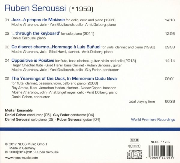 | 5 | The Yearnings of the Duck, in Memoriam Dudu Geva (Für Flöte, Klarinette, Kontrabass, Violine, Violoncello und Klavier) | 00:09:01 | |