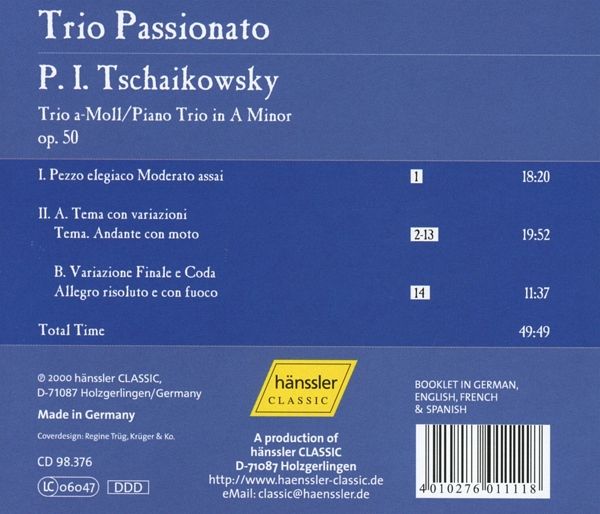 | 1 | Trio für Klavier, Violine und Violoncello a-moll op. 50 | ||