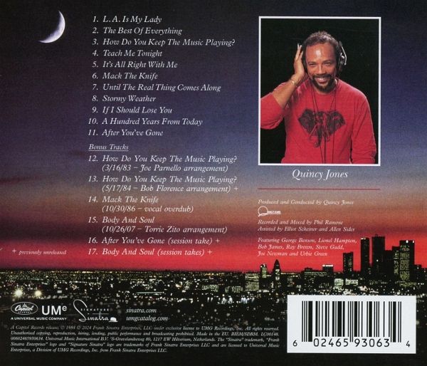 Als sich Frank Sinatra und Produzent Quincy Jones 1984, nach zwanzig Jahren erstmals wieder für eine gemeinsame Albumproduktion im Studio trafen, hielt die Musikwelt die Luft an. Eine Bigband aus TopMusikern und prominente Gäste wie George Benson, Lionel Hampton und Bob James rundeten das Treffen der beiden Entertainment-Giganten ab. L.A. Is My Lady schaffte es auf Platz 58 der Billboard-Pop- und auf Platz 8 der Jazz-Charts. Der für Sinatra ungewöhnlich poppige Titelsong, der es sogar auf eine MTV-Rotation brachte, und die restlichen Titel im klassischen Swing-Stil gehören längst zu den beliebtesten Alben im Spätwerk des Sängers. Die 40th Anniversary Deluxe Edition wurde jetzt vom damaligen Tonmeister Larry Walsh brandneu remixed. Die CD-Version beinhaltet zusätzlich sechs alternative Versionen der Albumtracks Mack The Knife, Body And Soul, After You?ve Gone und How Do You Keep The Music Playing, von denen drei hier ihre Weltpremiere feiern!