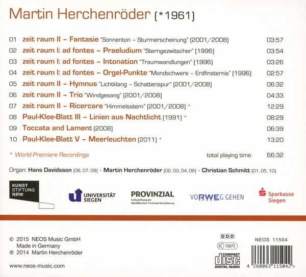 | 4 | Zeit Raum I: Ad fontes - Orgel-Punkte "Mondschwere - Erdfinsternis" (1996) | 00:02:57 | |