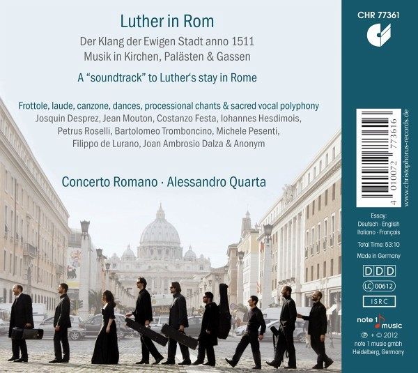 "Eine Hölle auf Erden!" soll Martin Luther Rom im Rückblick auf seine Pilgerreise von 1511 genannt haben. Rom war damals trotz der allgegenwärtigen Antike tatsächlich eher ein heruntergekommenes Nest. Zudem war ausgerechnet die deutsche Pilgerunterkunft in der Kirche Sant'Agostino auch eine soziale Anlaufstelle für Prostituierte. Gut fünfhundert Jahre nach Luthers Rom-Reise versucht das Concerto Romano, eine Art "Soundtrack" seines Aufenthaltes zu rekonstruieren, ausgehend von römischen Musikeditionen dieser Jahre, den Repertoires der städtischen Kapellen und ganz allgemein von Werken, die damals in Italien berühmte "Hits" waren. Immerhin scheint es in dieser "Hölle auf Erden" wunderbare Musik gegeben zu haben.
