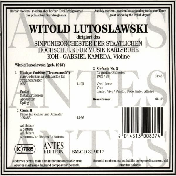 Witold Lutoslawski: Musique funèbre (Trauermusik), Chain II, Sinfonie Nr.3.