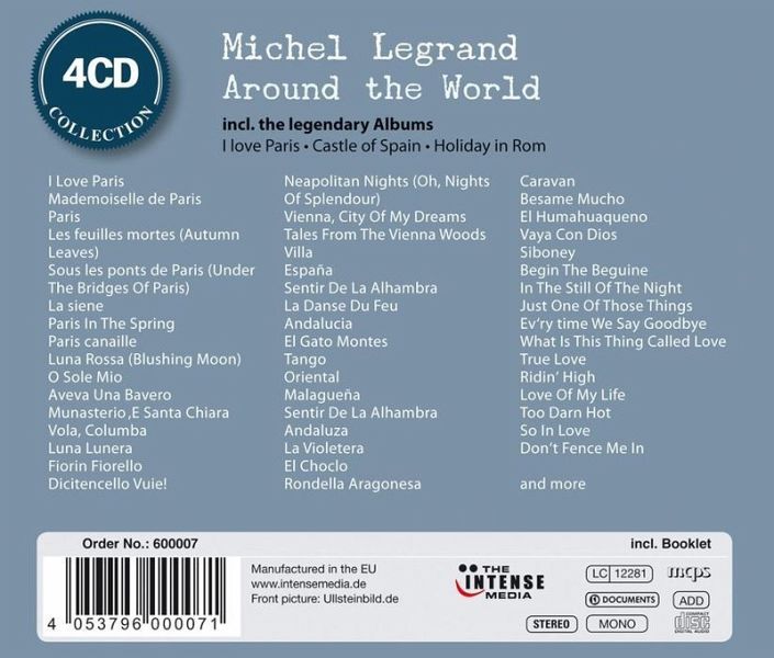 Der französische Komponist, Pianist und Arrangeur Michel Legrand ist in diesem Jahr 80 Der französische Komponist, Pianist und Arrangeur Michel Legrand ist in diesem Jahr 80 Jahre alt geworden. Der Sohn eines Dirigenten aus der Pariser Vorstadt, hat in seiner unglaublichen Karriere die Musik für mehr als 200 Filme und TV-Produktionen geschrieben, und dazu eine Reihe berühmter (und noch heute oft gesungener) Songs. Die Regenschirme von Cherbourg oder aber Thomas Crown ist nicht zu fassen (mit dem Welterfolg The Windmills Of Your Mind) brachten ihm Oscars, Grammys und viele Preise mehr ein. Michel Legrands erster Hit, wenn man so will, war eine Hommage an seine Heimatstadt, die er im Alter von 22 mit einem Orchester der besten Musiker von Paris aufnahm. I Love Paris, ein Album mit einigen der schönsten Lider über und aus Paris, die Legrand liebevoll und oft überraschend neu arrangiert hatte, wurde weltweit ein Verkaufsschlager. Angeregt von diesem Erfolg, machte sich Michel Legrandauf eine Art musikalischer Weltreise er nahm die thematisch ähnlichen Alben Holiday In Rome, Castles In Spain oder Legrand In Rio auf. All diese Alben sind in voller Länge in dieser CD-Box enthalten, plus Legrands erstem Tribut an die USA: Sein Album of Cole Porter mit Legrand-Arrangements einiger der schönsten Kompositionen des großen Songwriters aus Peru, Indiana, der Zeit seines schöpferischen Lebens von New York bis Paris beliebt und berühmt war.