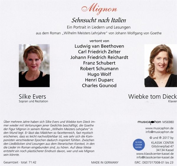 | 17 | Mignons Lied (Kennst du das Land, wo die Zitronen blühn) (Goethe) | 00:06:39 | |