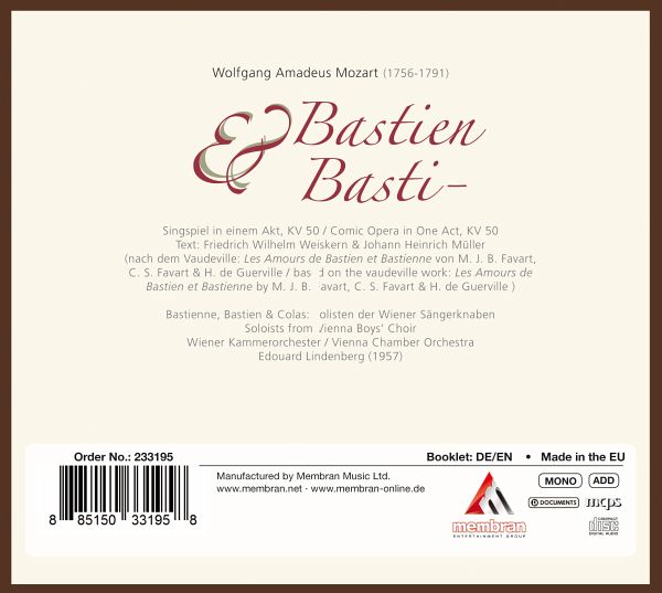 | 1 | Bastien und Bastienne KV 50 (46b) (Oper in 1 Akt) (Gesamtaufnahme) | ||