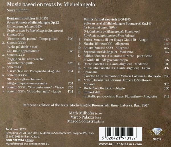 | 1 | Sieben Sonette von Michelangelo für Tenor und Klavier op. 22 | ||