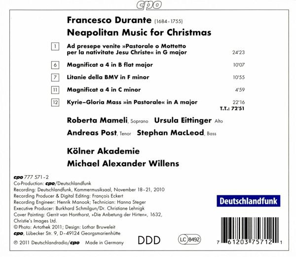 | 1 | Pastorale o motetto per la nativitate Jesu Christe "Ad presepe venite" G-Dur (bearb. von Michael Alexander Willens) | ||