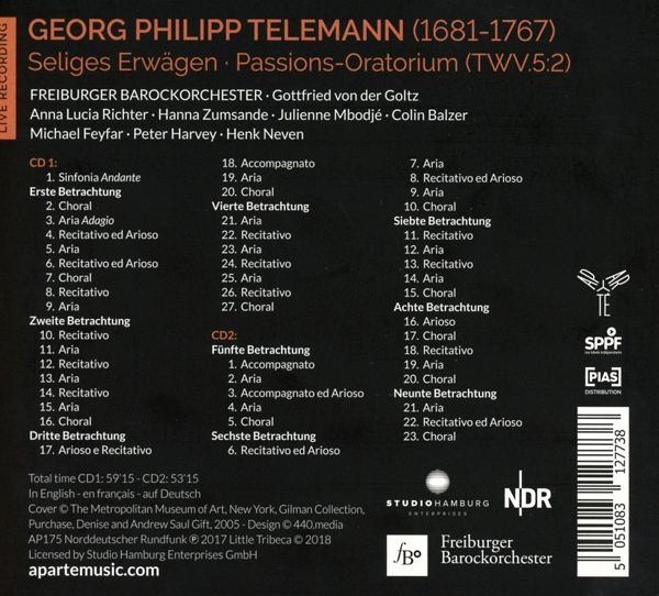 | 1 | Seliges Erwägen (Passions-Oratorium) (TWV.5:5) (Gesamtaufnahme) | ||