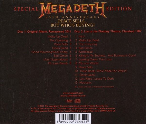 | 9 | Peace Sells (Live At The Phantasy Theatre, 1987) | 00:04:28 | |