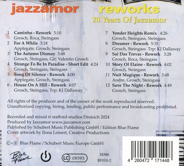 Seit zwei Dekaden kreieren Jazzamor mit ihrem zurückgelehnten Stilmix aus Jazz, Bossa Nova und Lounge Music imaginäre Sehnsuchtsorte, an die das Frankfurter Duo regelmäßig ein globales Following einlädt. Nach insgesamt zehn Studioalben und zwei Best Of-Compilations feiert die Formation nun ihr Gründungsjubiläum mit einer ganz besonderen Werkschau: Auf "20 Years Of Jazzamor" präsentieren Bettina Steingass und Roland Grosch ausgesuchte Songs aus allen Schaffensperioden als exklusive Reworks, Remixe und unveröffentlichte Edits. Ergänzt wird die Zusammenstellung von einem brandneuen Track, mit dem Jazzamor nun das nächste Kapitel einläuten!