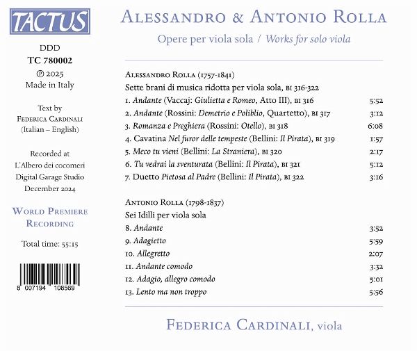 | 2 | Demetrio e Polibio (Oper): Quartett (bearb. für Viola solo von Alessandro Rolla) (Auszug) | ||