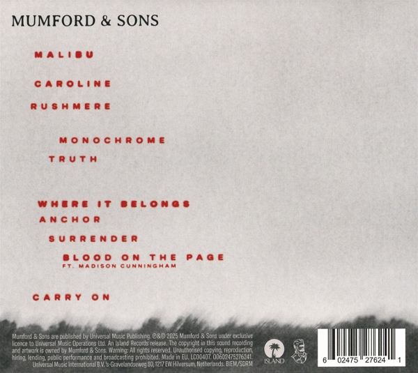 Mumford & Sons melden sich nach 7 Jahren Pause mit ihrem neuen Album 'Rushmere' zurück! Seit 2009 veröffentlichte die Band rund um Sänger Marcus Mumford vier Alben, die ihnen insgesamt zwei Brit Awards, 2 Grammys (u.a. für 'Album Of The Year'), hohe Chartplatzierungen, Headliner-Auftritte bei Festivals (u.a. beim Glastonbury Festival) und weltweit ausverkaufte Touren bescherte. Benannt nach dem Londoner Vorort, an dem sie sich als Band zusammenfanden, führt 'Rushmere' zurück zu ihren Ursprüngen und glänzt mit dem charakteristischen Folk-Rock, der Fans seit 16 Jahren begeistert.