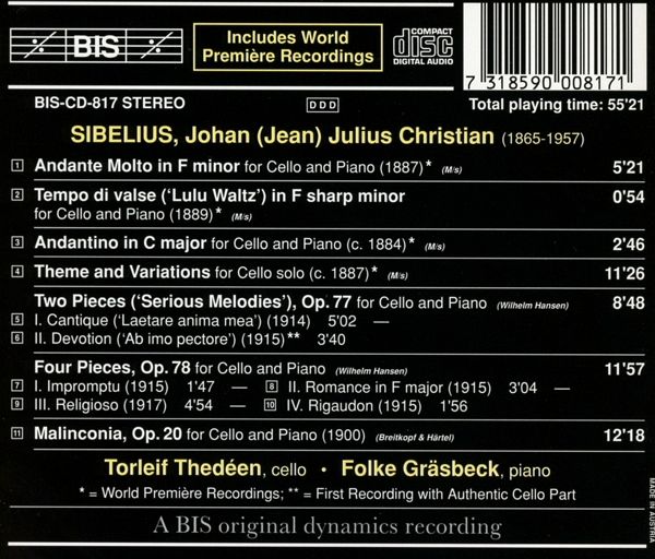 | 1 | Andante molto f-moll (1887) (für Violoncello und Klavier) | 00:05:29 | |