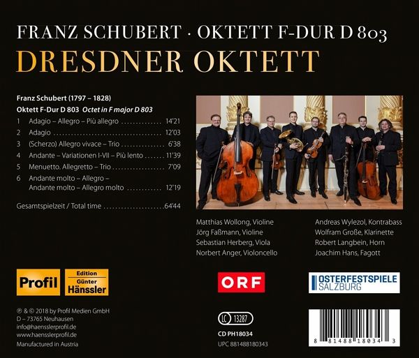 | 1 | Oktett für Klarinette, Horn, Fagott, Streichquartett und Kontrabass F-Dur op. 166 D 803 | ||