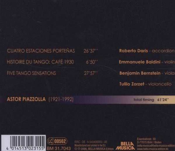 | 1 | Cuatro Estaciones portenas (Vier Tango-Jahreszeiten) (Auszug) (bearb. für Akkordeon und Streichtrio von Roberto Daris) | ||