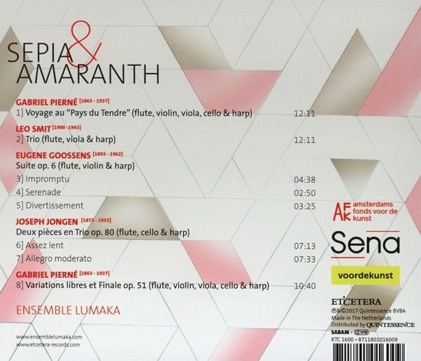 | 1 | Voayage au "Pays du tendre" (für Flöte, Violine, Viola, Violoncello und Harfe) | 00:12:11 | |