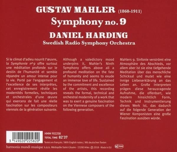 Mahlers 9. Sinfonie verströmt eine Atmosphäre des Abschieds, vor allem aber ist sie eine tiefgehende Meditation über das menschliche Schicksal und mutet wie eine innige Liebeserklärung an das Leben an. Das großartige Schwedische Radio-Sinfonieorchester und sein vielseitiger Chefdirigent Daniel Harding offenbaren, wie modern hinsichtlich Form, Technik und Instrumentierung dieses Werk ist, das auf die folgende Generation Wiener Komponisten eine große Faszination ausüben sollte.
